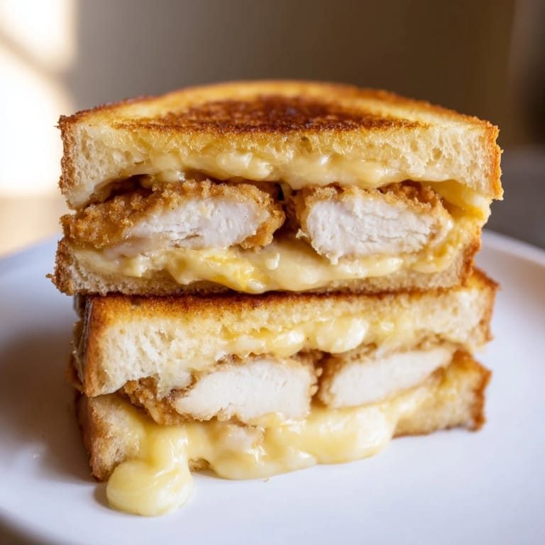 Pin this My neighbor stopped by on a random Tuesday afternoon with her two kids, and we were all staring into my nearly empty fridge. She spotted a box of chicken nuggets in the freezer and joked that we should make "fancy grilled cheese." That sparked something—what if we put the nuggets right inside? Thirty minutes later, those kids were fighting over the last triangle, and honestly, I get it. There's something almost rebellious about combining two beloved comfort foods into one perfect, gooey sandwich.
