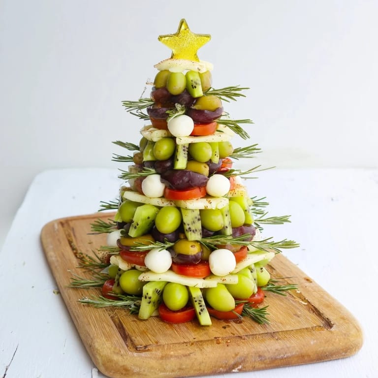 Pin this I'll never forget the year my sister arrived at our Christmas Eve gathering with this stunning green and red tree-shaped platter, and suddenly the whole appetizer spread felt intentional, festive, and utterly Instagram-worthy. It was so beautiful that guests actually paused before eating, and that moment of collective admiration over something so simple and fresh made me realize that the best entertaining doesn't require complicated cooking—it requires a bit of imagination and a wooden board.