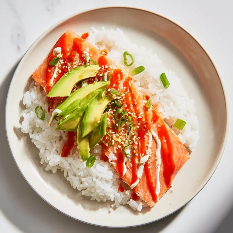 Pin this I discovered this bowl on my phone at 11 PM on a Wednesday, half-asleep, scrolling through videos of people assembling rice and salmon with an almost meditative focus. The next day, I had leftover salmon from dinner and rice sitting in the fridge, so I figured I'd give it a shot. Twenty minutes later, I was genuinely shocked at how satisfying something so simple could be—the way the warm rice softened the cool avocado, how the soy sauce and sesame oil made everything taste intentional. It became my default lunch when I wanted something that felt both comforting and a little bit special.