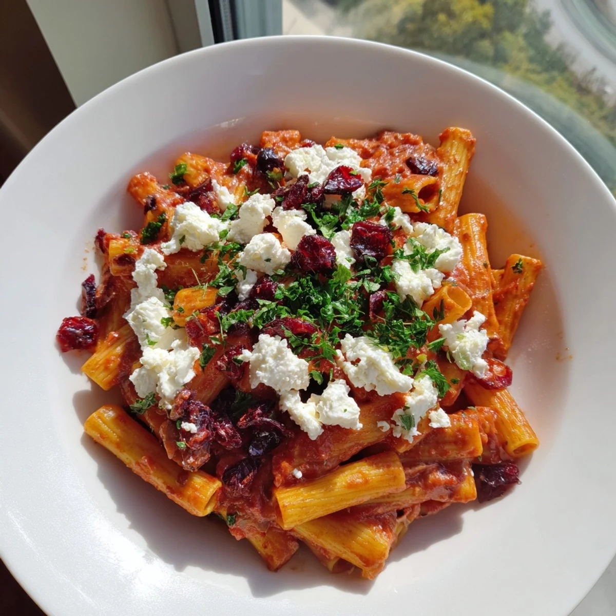 Pin this A cozy, savory-sweet pasta casserole featuring tangy feta, tart cranberries, earthy sage, and golden baked pasta—perfect for fall or holiday gatherings.