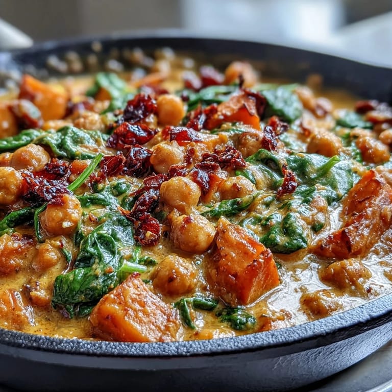 Pin this Indulge in a bowl of pure comfort with this Creamy Coconut Curry Chickpea Skillet. Perfectly balanced with tender sweet potatoes, protein-rich chickpeas, and vibrant spinach, this one-pan vegan wonder is as nutritious as it is flavorful. It is the ultimate solution for a busy weeknight when you crave something exotic yet simple to prepare.
