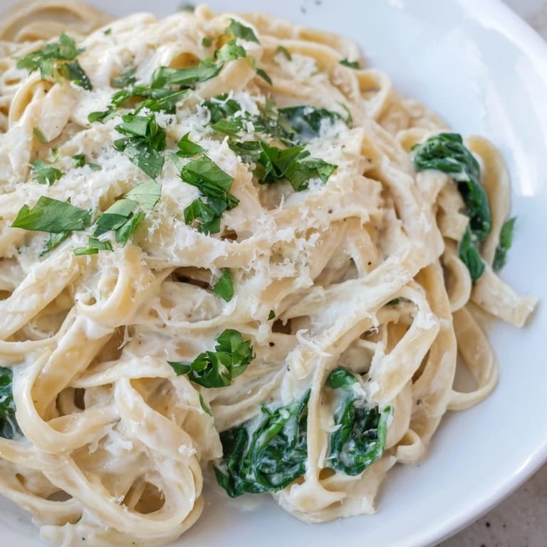 Pin this There's something about the smell of butter melting in a pan that instantly transports me back to my grandmother's kitchen on a rainy Sunday afternoon. She was making Alfredo for the first time in years, and I watched as the cream transformed into liquid silk, golden and luxurious. When she tossed in the fresh spinach at the last moment, I realized this wasn't just comfort food—it was her way of saying she cared, all wrapped up in a bowl of pasta. That day, I learned that the simplest dishes often carry the deepest meaning.