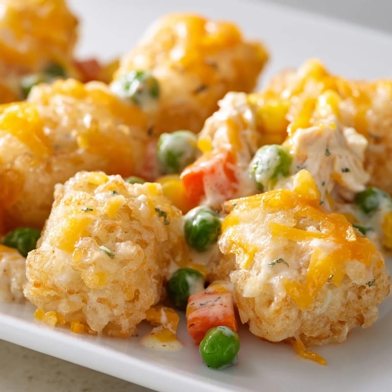 Pin this There's something magical about the smell of tater tots crisping in the oven—that toasted, golden aroma that fills your kitchen and makes everyone come running. Years ago, my sister called asking for an easy weeknight dinner that wouldn't require a trip to the store, and this casserole was born from whatever I had on hand: leftover rotisserie chicken, a can of soup, and a bag of frozen tater tots. What started as a quick fix became the dish everyone requests now, and I've learned that the secret isn't in fancy techniques—it's in letting crispy tater tots do what they do best, sitting proud on top of a creamy, savory filling below.