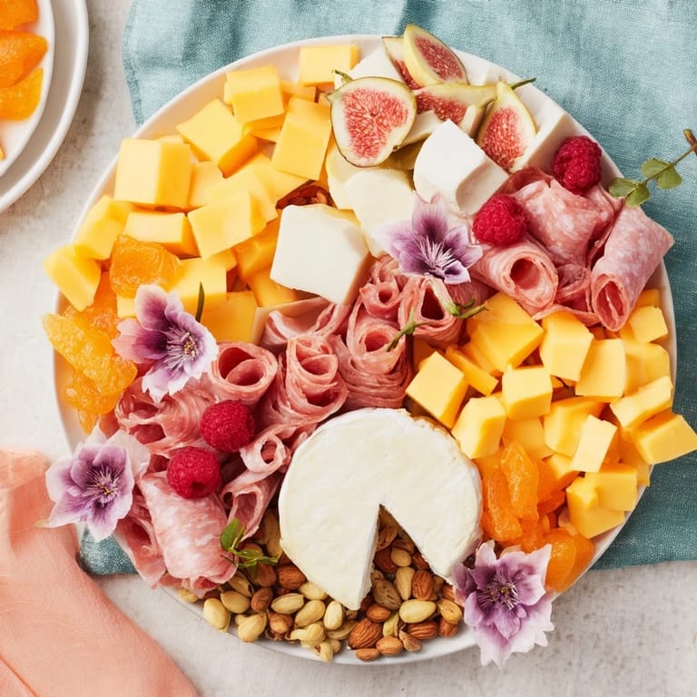 - Charcuterie & Protein: 100 g prosciutto folded, 100 g salami rolled, 100 g smoked turkey breast sliced