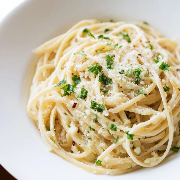 I've added sautéed mushrooms that have been cooked down until they're almost caramelized, crispy torn spinach that wilts into the heat, even thin slices of roasted chicken. Once I whisked an egg yolk into the pasta water before tossing it in, and it became something between carbonara and this dish—richer, almost velvety. Fresh herbs beyond parsley work beautifully too: mint if you're feeling adventurous, or a mix of basil and oregano if you want to lean Italian.