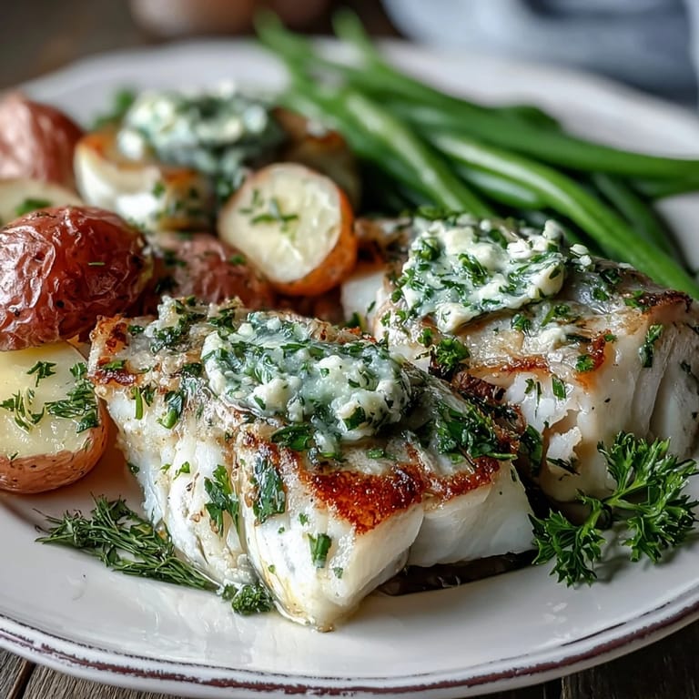 - Cod fillets (4 pieces, about 150 g each): Mild white fish that stays moist when baked and doesn't overpower the herb butter; pat them dry before cooking so they brown slightly instead of steaming.