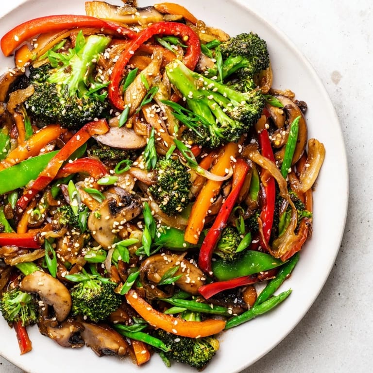 This stir-fry shines over steamed jasmine rice, but brown rice adds nutty depth and soba noodles make it feel more like a complete meal. For extra protein, crispy cubes of tofu or pan-seared tempeh work beautifully without overpowering the vegetables.