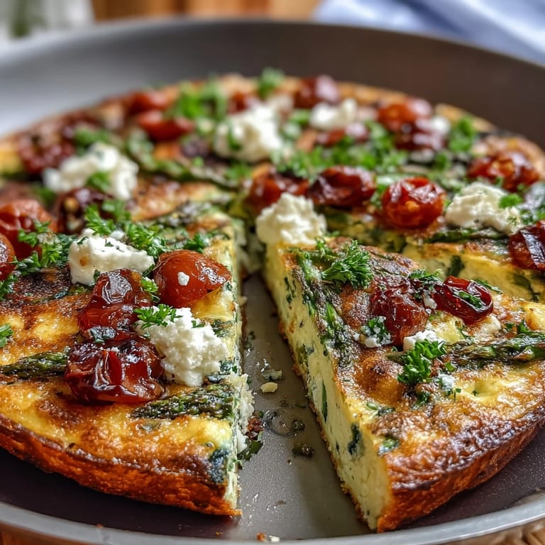 Pin this Experience a vibrant, protein-packed spring veggie frittata that brings fresh seasonal flavors to your breakfast, brunch, or light lunch table. This Mediterranean-inspired dish artfully combines tender asparagus, cherry tomatoes, and fragrant herbs in a golden, fluffy egg base, all made effortlessly in one pan for easy cleanup.