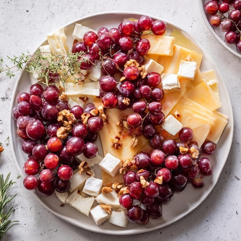 Serve immediately to let guests pick from the fresh clusters and cheese, ensuring optimal taste and visual impact.