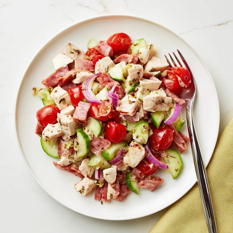 Pin this Last summer my neighbor Maria brought over this incredible chopped salad from her family's deli tradition. One bite and I was begging for the recipe. The combination of salty salami, creamy provolone, and that zingy pepperoncini dressing somehow tasted like an Italian vacation.