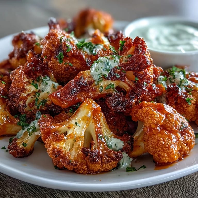 Pin this My roommate came home raving about buffalo cauliflower wings from some trendy spot downtown, and I thought, why pay for that when I can make it better at home? That evening, I roasted a head of cauliflower with nothing but oil and spices, tossed it in hot sauce and butter, and suddenly my tiny kitchen smelled like a sports bar in the best way possible. The real game-changer was dunking each floret in a homemade ranch yogurt dip instead of the usual heavy sour cream version. Now this is what I make when friends show up hungry and I want something that feels indulgent but doesn't wreck my macros.
