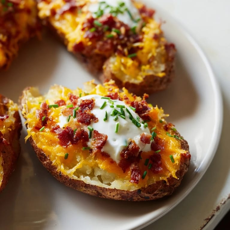 Pin this I was eighteen, watching my uncle pull a baking sheet of loaded potato skins out of the oven at a family barbecue, and I remember thinking nothing had ever looked that good. The cheese was bubbling, the bacon crumbled across the top catching the light, and when he handed me one, steam rose into my face. That first bite—the crispy shell giving way to the warm, creamy filling—changed how I thought about potatoes forever. Now I make them for almost every gathering, and somehow they disappear faster than I can plate them.