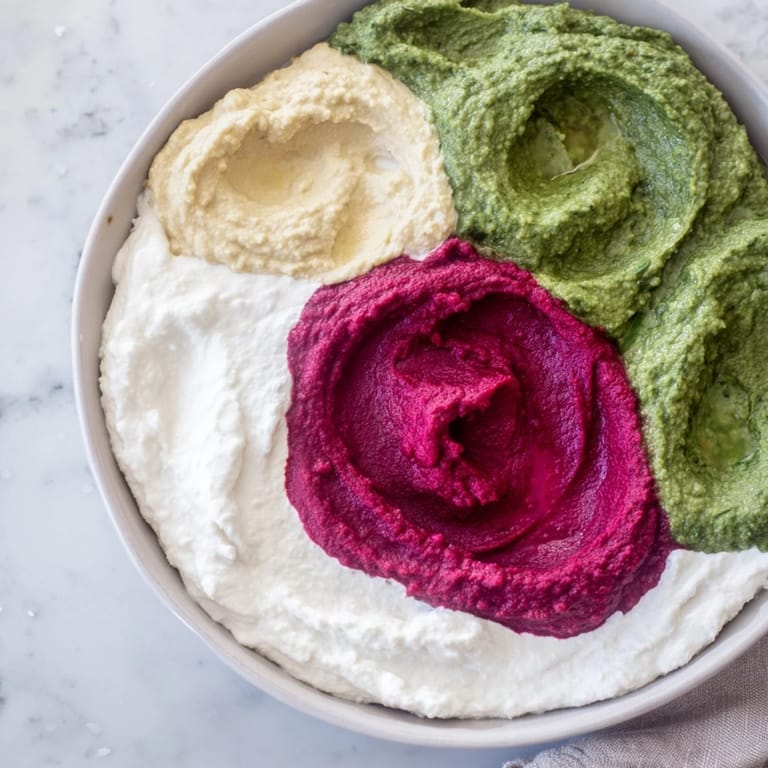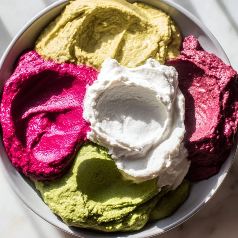 Pin this I discovered the magic of marbled dips entirely by accident at a gallery opening, watching a caterer swirl different colored hummus on a platter like it was abstract art. The way the colors bled into each other, the colors catching the light, completely stopped me. I went home thinking about it for days, sketching patterns on paper before I finally tried it myself, and suddenly my parties had a centerpiece that looked far more impressive than the thirty minutes it actually took.