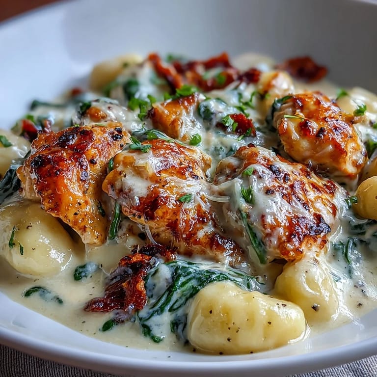 Pin this There's something about watching gnocchi puff up in a creamy sauce that makes you feel like you've cracked some secret code in the kitchen. I stumbled onto this one-pan version on a Tuesday night when I had chicken thighs thawing and absolutely no energy to fuss with multiple pots, and somehow it became the dish I make whenever I need to impress someone without looking like I tried too hard. The oven does most of the work while you sip wine and chat, and by the time it emerges golden and bubbling, everyone's already convinced you've been cooking all day.
