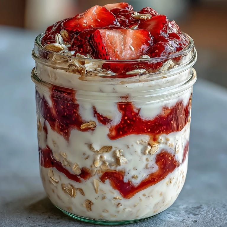 Pin this There's something magical about opening your fridge on a rushed Tuesday morning and finding breakfast already waiting for you, creamy and ready to eat. I discovered overnight oats by accident—I'd made a giant batch of Greek yogurt the night before and didn't want it to go to waste, so I threw it into a jar with some oats and milk, hoping for the best. What I got instead was this silky, naturally sweet base that tasted like dessert but felt completely nourishing. The strawberry chia jam came later, a way to add bright color and a little texture without any real effort. Now it's my go-to when I need something that feels indulgent but actually fuels my whole morning.