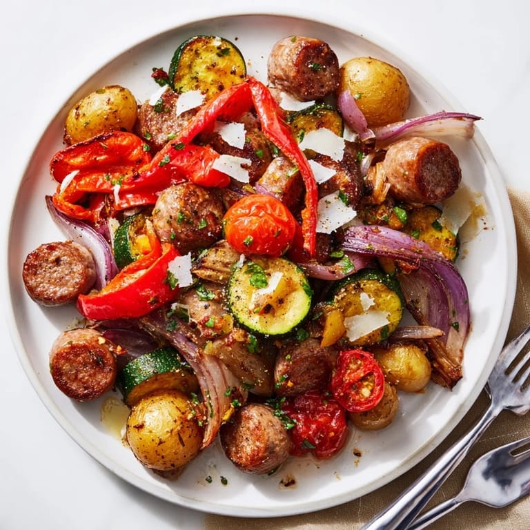 Pin this A vibrant, easy-to-make one-pan meal featuring roasted sausage, colorful vegetables, and aromatic herbs the perfect weeknight dinner with minimal cleanup.