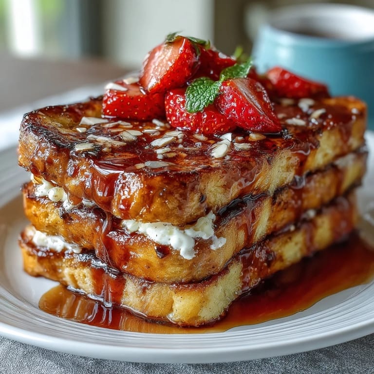 This casserole transforms humble ingredients into something truly spectacular. The rich brioche or challah provides a tender, buttery base that soaks up the vanilla-scented custard beautifully. Fresh strawberries nestle between the layers, their natural sweetness intensifying as they bake. The cinnamon adds warmth, while the almond and turbinado sugar topping provides that satisfying crunch we all crave in a perfect breakfast. It's vegetarian-friendly, easy enough for beginner cooks, and sophisticated enough to impress even the most discerning brunch guests.