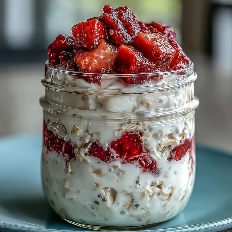 Pin this There's something deeply satisfying about preparing breakfast the night before, and these strawberry cheesecake overnight oats changed my mornings entirely. I was standing in my kitchen on a random Tuesday, staring at a container of Greek yogurt and wondering how to make oats feel less predictable, when it hit me: why not layer them like an actual cheesecake? The first jar I made sat in my fridge, and by morning, the oats had absorbed all that creamy goodness into something almost dessert-like. Now I can't imagine starting the week without them.