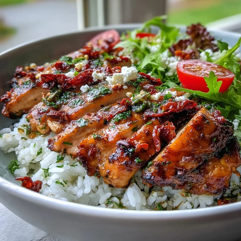 Pin this There's something about sun-dried tomatoes that makes me feel like I'm cooking somewhere warm, even on gray afternoons in my small kitchen. My neighbor brought over a jar of them one day, still glistening in their oil, and I'd been staring at it for a week wondering what to do with it. Then one evening, I threw together chicken, rice, and greens in a bowl, and that one jar transformed everything into something that tasted like a Mediterranean escape. It's become my go-to when I want something that feels special but doesn't demand hours of fussing.