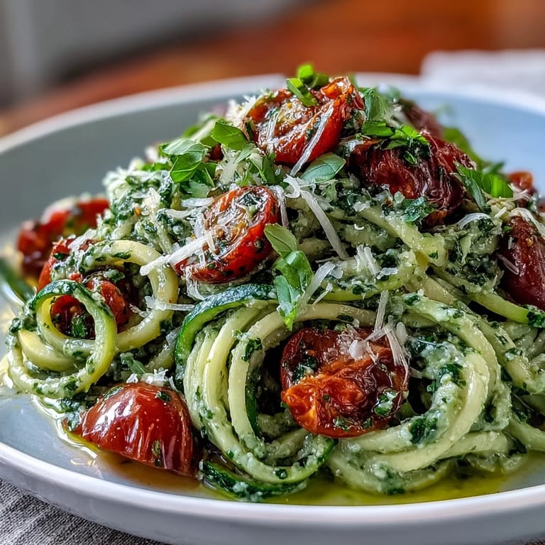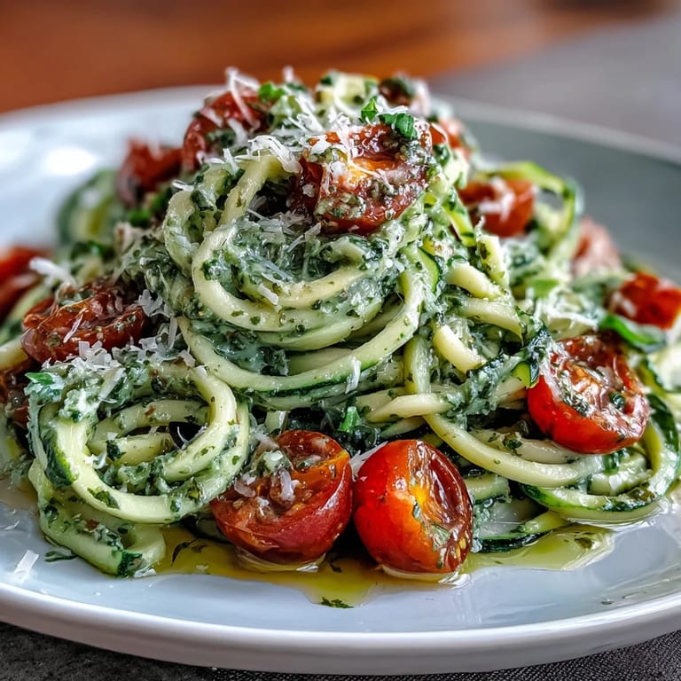 I first tossed these bright noodles for a small gathering on my balcony, and it became the kind of meal that made conversation linger long after plates were cleared. Someone spilled a little olive oil, we laughed, and the basil aroma mixed seamlessly with the sunset air. Serving it fresh, people commented on the crunch from the zucchini and the sweetness of tomatoes, and I relished how fuss-free it was—just a little sauté and a swirl of pesto.